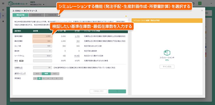 EX在庫シミュレーションサービスは、安全在庫の最適値をシミュレーションし、実際の需要予測や供給状況に基づいて、最適な在庫レベルを見定めるサービスです。